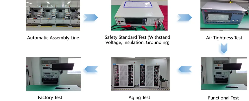 CCC(중국강제인증), CE(유럽연합), UL(미국), EN50498 등 국내외 권위 있는 인증을 획득한 제품입니다. NB/T33001-2025 및 GB31241-2014 표준을 준수하여 전기 안전 및 전자기 호환성을 보장합니다. 우리는 현대적인 생산 기반을 보유하고 있으며 V0 등급 및 FR-4 유리 섬유 PCB 보드를 갖춘 난연성 ABS+PC 복합 재료 하우징을 채택합니다. 주요 솔더 조인트는 웨이브 솔더링 기술을 사용하여 처리되었으며 5,000회 삽입/추출 주기, 진동 저항 및 염수 분무 부식 저항과 같은 엄격한 테스트를 통과했습니다. 모든 장치는 공장에서 출고되기 전에 72시간의 전체 부하 노화 테스트를 거쳐 100% 인증 비율을 달성합니다. 우리는 원자재 조달부터 완제품 배송까지 완전한 추적이 가능한 포괄적인 품질 관리 시스템을 구축했습니다.