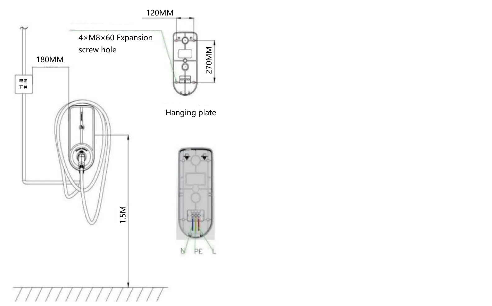 1) 이 충전 파일은 IP54 보호 수준을 충족하고 실외에 설치할 수 있는 실내 및 실외 범용 충전 파일입니다.